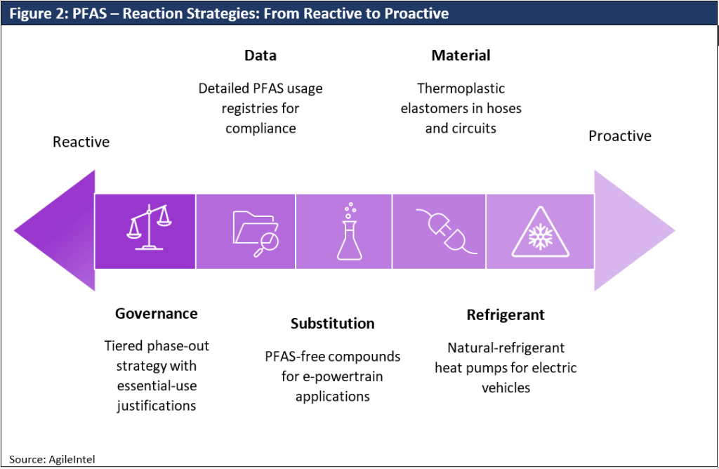 e. Governance, essential-use justifications and phased targets – Given that PFAS encompasses over 10,000 substances, most OEMs are implementing a tiered phase-out strategy. First, they’re removing PFAS from non-critical applications and then conducting substitution trials and validations for critical seals and high-voltage insulation. Finally, they’re preparing essential-use dossiers as needed, with a re-evaluation set to align with ECHA’s 2026 timeline. Formal technical documents submitted by automotive and chemical industry associations to the ECHA also stress the importance of differentiating high-molecular-weight fluoropolymers, such as PTFE, from more mobile PFAS in risk management, anticipating tailored measures that are likely to emerge in the final EU restrictions.