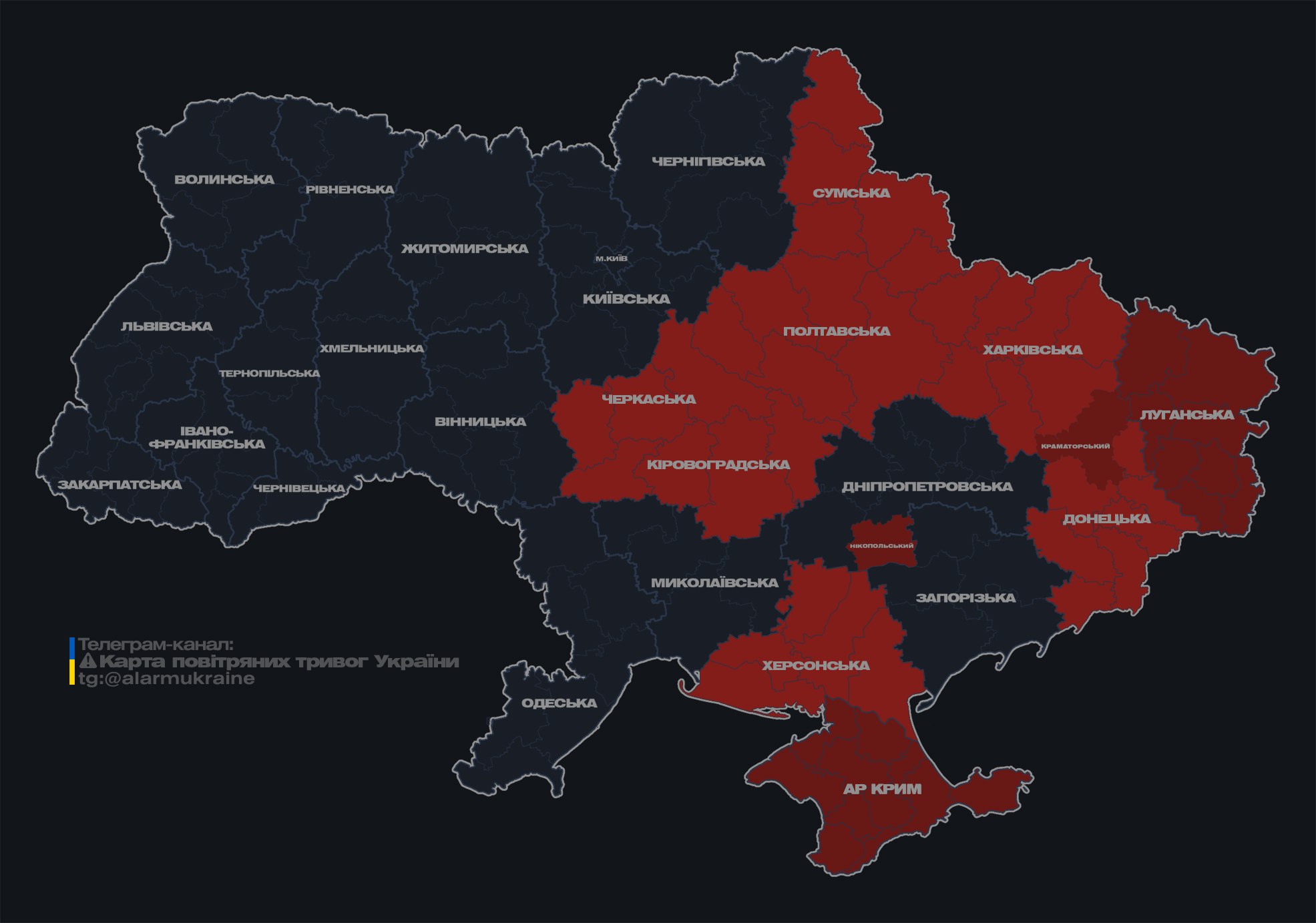 По данным ПС, в 22:08 угроза применения дронов существует уже и для Кировоградской и Черкасской областей.