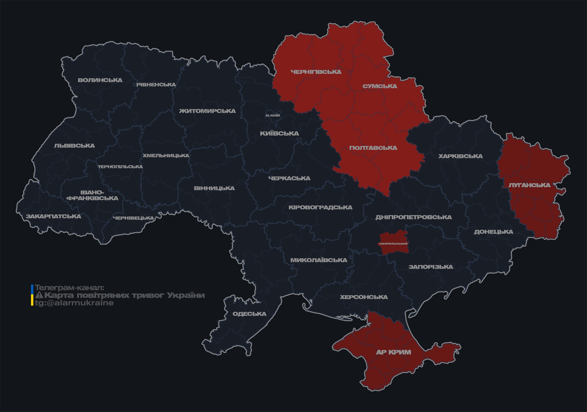 В 23:48 Воздушные силы сообщили о группе ударных беспилотников в Сумской области курсом на Черниговскую и Полтавскую области.