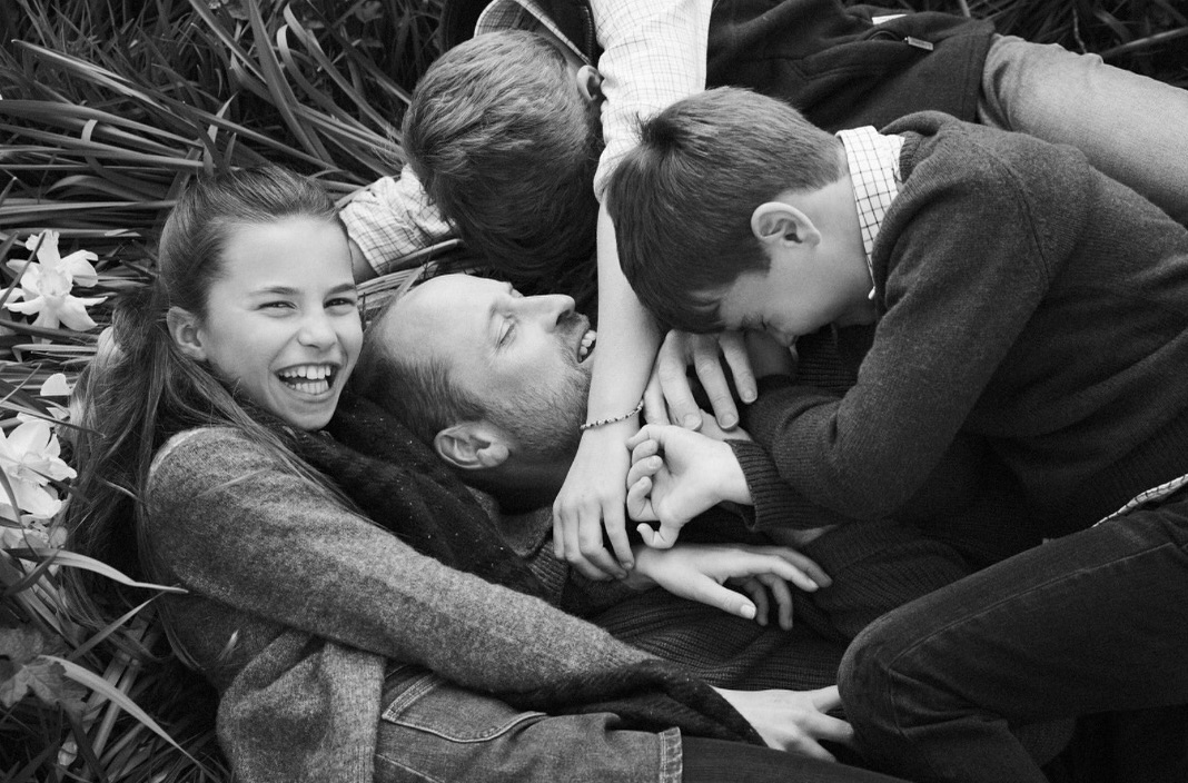 На первом снимке принц Уильям позирует вместе со своими детьми: 11-летним принцем Джорджем, 10-летней принцессой Шарлоттой и 7-летним принцем Луи.