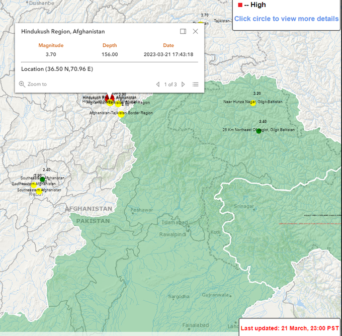 Позже метеорологический департамент Пакистана сообщил об афтершоках магнитудой 3,7 в районе Гиндукуша, они ощущались вдоль границы страны с Афганистаном.