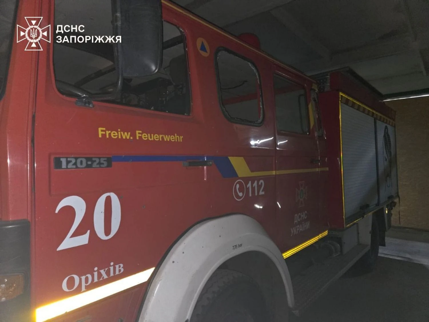 Russian troops struck a fire and rescue vehicle with an FPV drone after extinguishing a fire in Orikhiv, Zaporizhzhia. One rescuer sustained a shoulder injury and a mine-blast trauma. He was transported to the hospital. Other emergency workers were not injured.