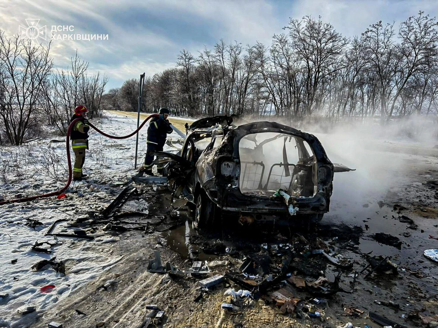 On February 11, at about 1:00 PM, on the Kyiv–Kharkiv–Dovzhansky highway, near the village of Borshchivka, an enemy unmanned aerial vehicle hit an emergency medical service vehicle. As a result of the strike, the vehicle caught fire. There were five people in the cabin – medical workers and civilians. One woman died at the scene.